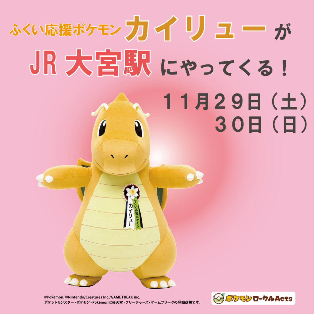 「ふくい応援ポケモン」カイリューが11月29日(土)、30日(日)JR大宮駅に遊びに来るよ!